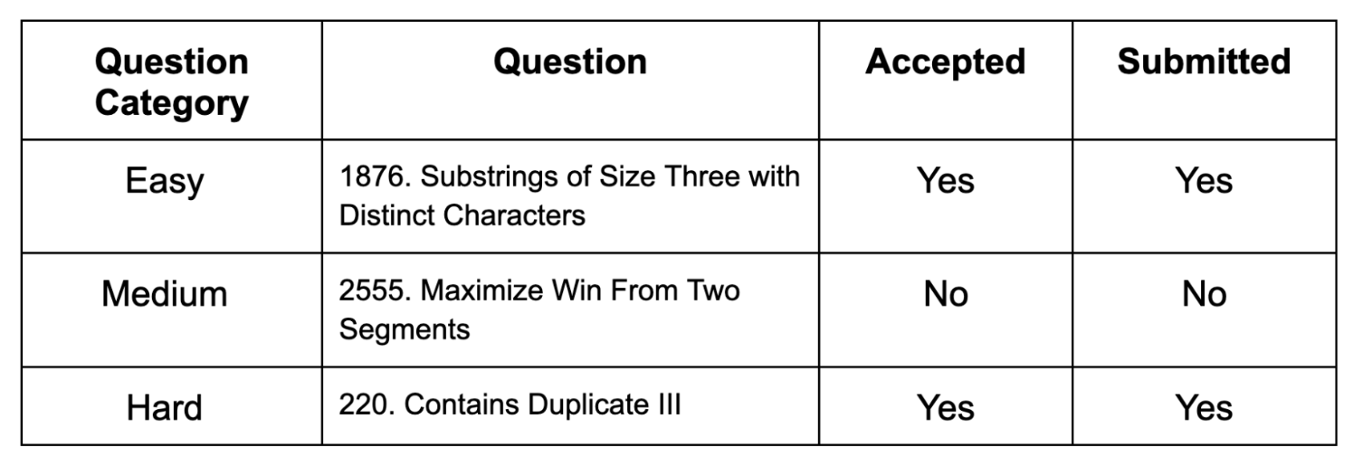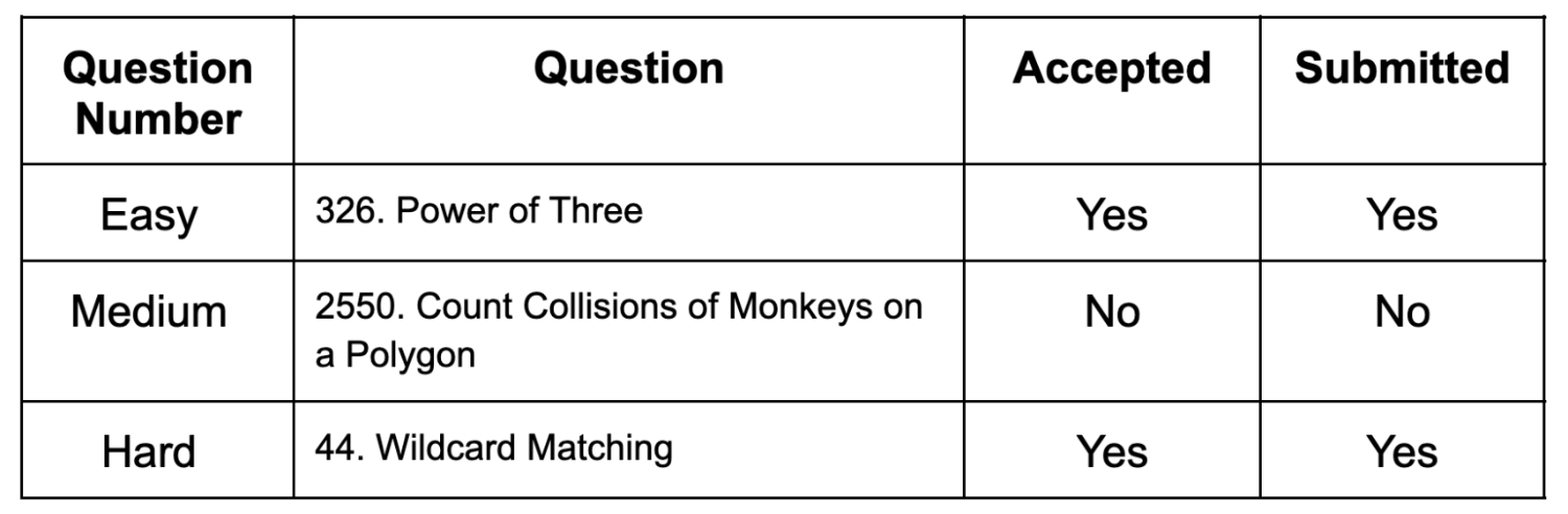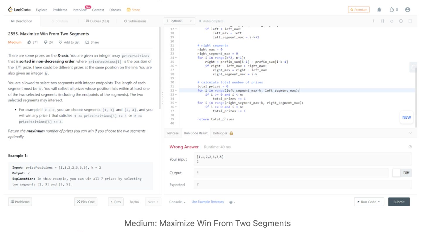 Dựa trên kết quả trên, ta thấy GPT-4 thể hiện khả năng vượt trội trong việc giải quyết nhiều loại câu hỏi LeetCode khác nhau. Nó cung cấp các giải pháp chính xác và hiệu quả cho một số câu hỏi ở các mức độ khó và thuật toán khác nhau. Tuy nhiên, mô hình gặp khó khăn khi giải một số câu hỏi, phải thử nhiều lần hoặc thậm chí là không thể giải được.