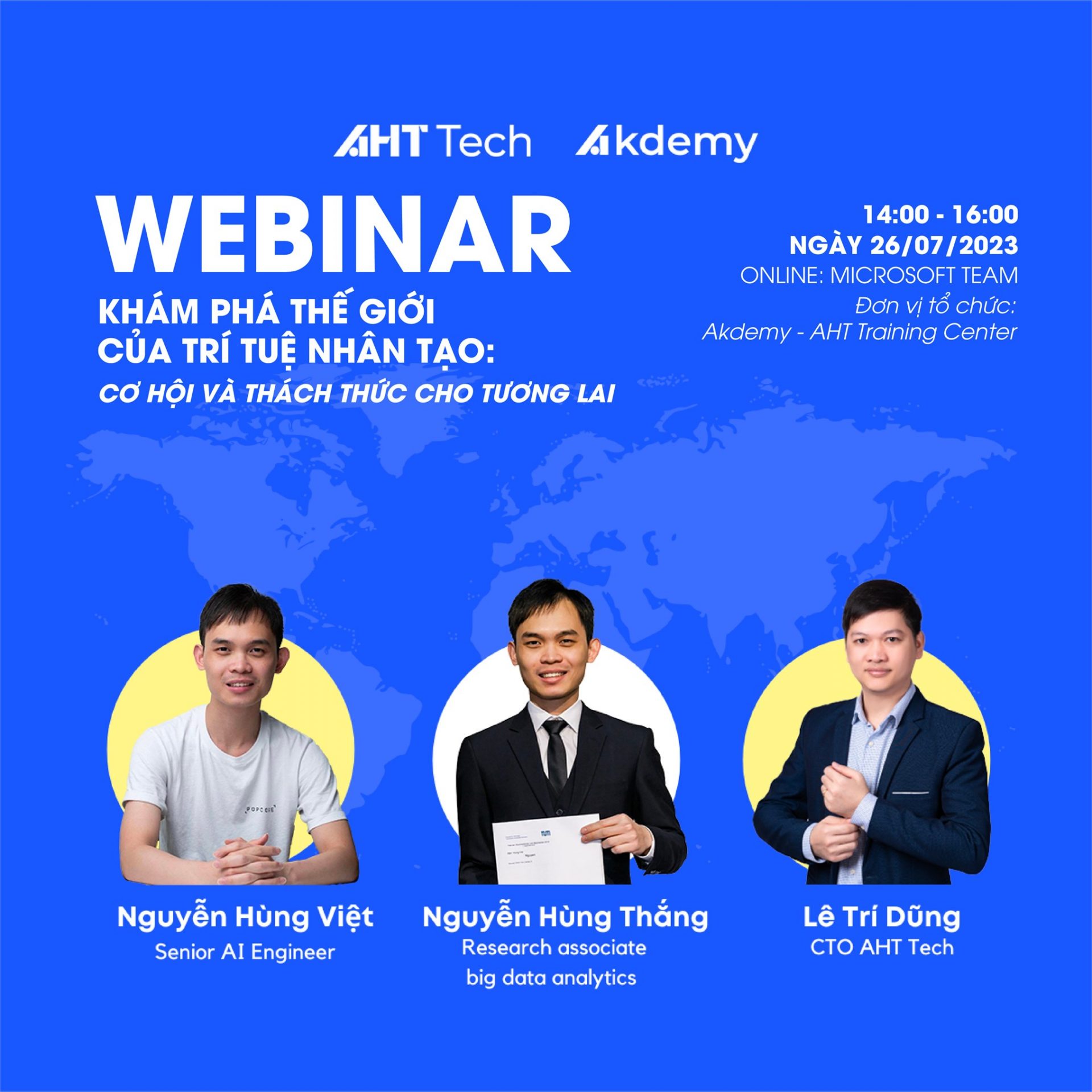 Hãy cùng tham gia Webinar của Akdemy và AHT Tech để tìm câu trả lời cho những câu hỏi này và khám phá những điều thú vị về lĩnh vực Trí tuệ Nhân tạo.